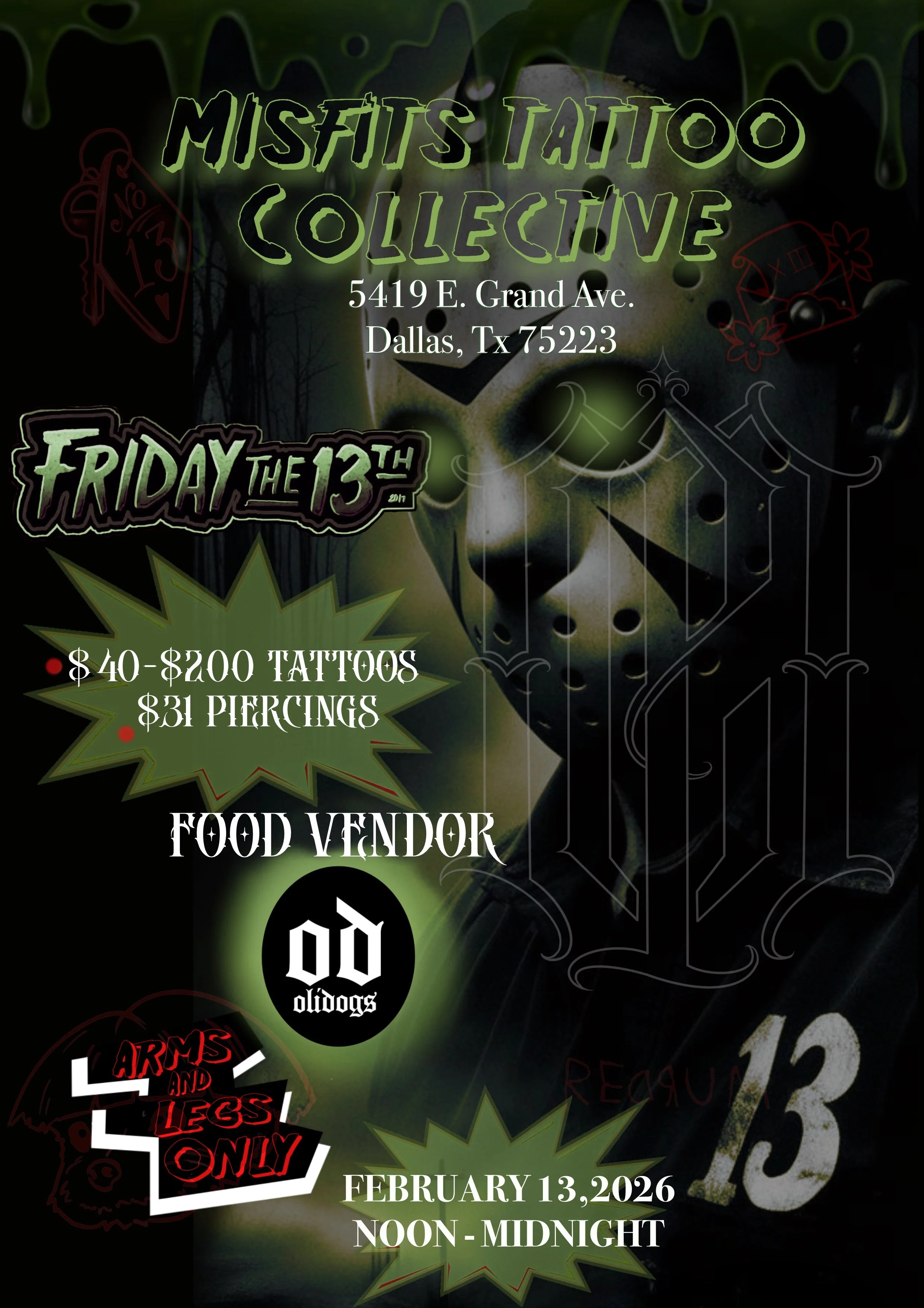 Walk in, pick your design, and leave with some Friday the 13th luck.